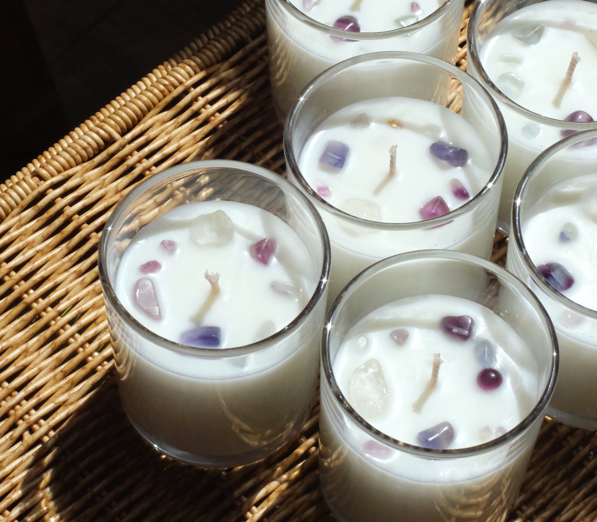 Manifestation Crystal Candle is our signature product. Each one is handcrafted by using natural white crystal and fluorite, with chamomile, lavender and other herbs, selected essential oils and natural soy wax. In addition, we have a total of 5 positive messages for everyone, hoping to help manifest everyone's wishes through text blessings and crystal herbal energy.